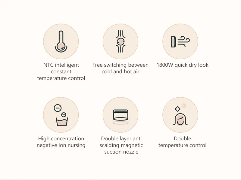 Фен Простой в форме и уникальный по цвету! Привлекательный. Очень сильный ветер, более чувствительный переключатель. Более интимная вещь-это однокнопочный переключатель между горячим и холодным воздухом посередине, что действительно практично! Существует также NTC Интеллектуальный постоянный контроль температуры, который может контролировать температуру хорошо, так что вы не будете гореть. Двойной контроль температуры, мой вьющийся волос сдувает, и это очень соответствует требованиям.