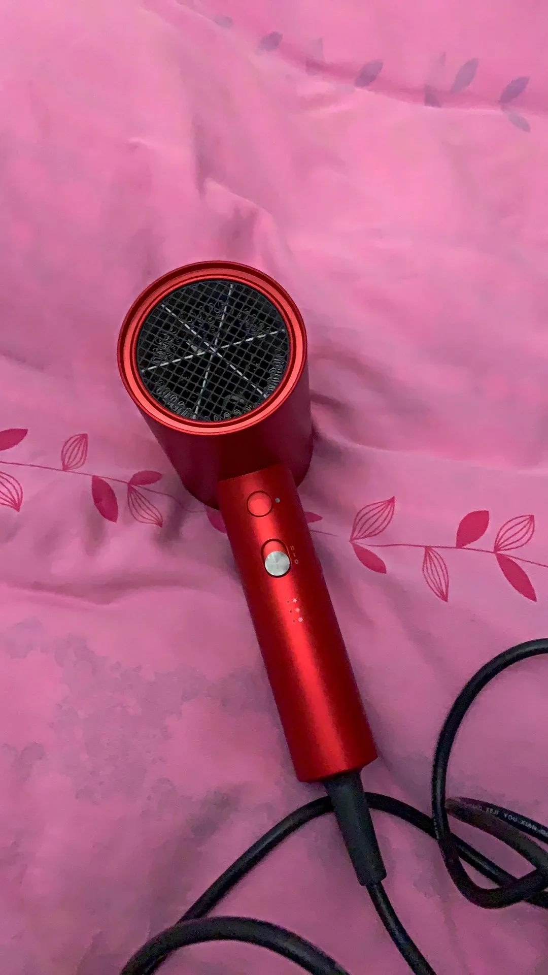 Этот фен для волос красного цвета имеет высокую цветовую ценность и выглядит очень текстурированным. Из-за отрицательных ионов не будет статического электричества после выдувания волос, и шум также очень мал. Он имеет три шестерни и скорость сушки очень быстрая. Я очень доволен