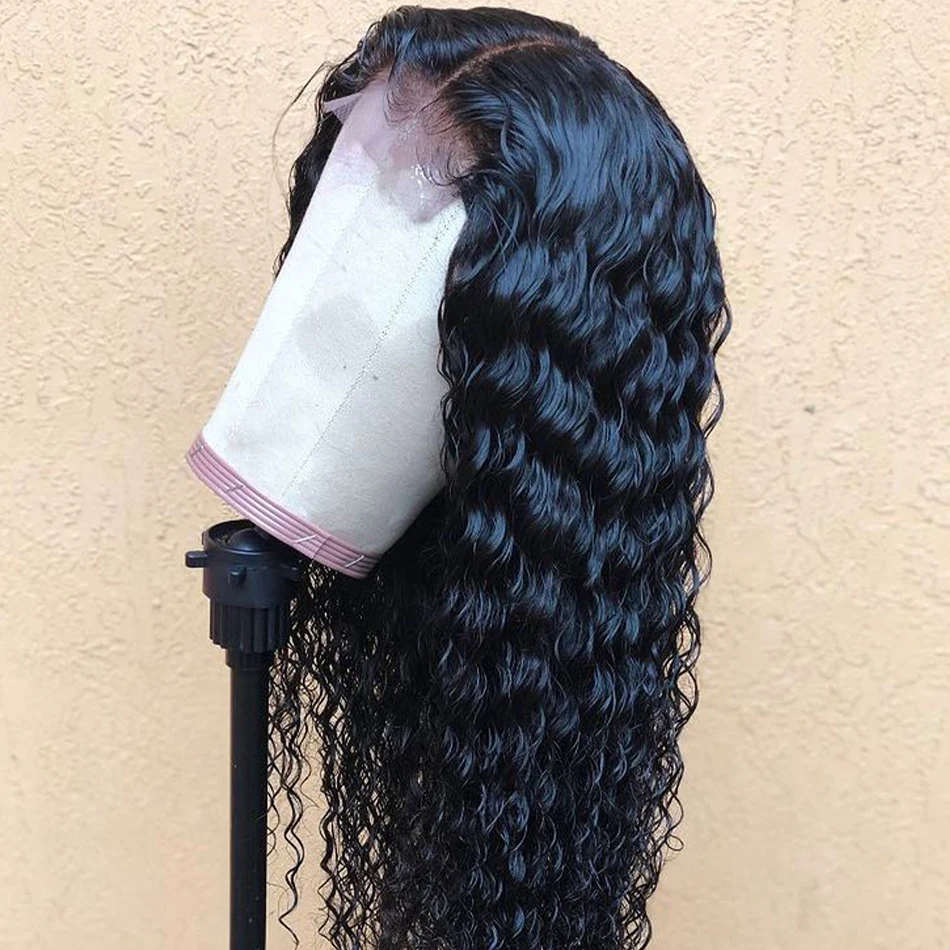 Глубокая волна 28 30 дюймов длинные Синтетические волосы на кружеве парики из натуральных волос бразильский воды вьющиеся передние парики для чернокожих Для женщин 4x4 застежка парики