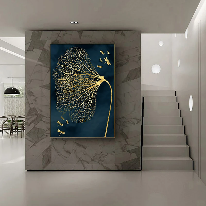 Постер с изображением золотых листьев и гор, абстрактное искусство,...