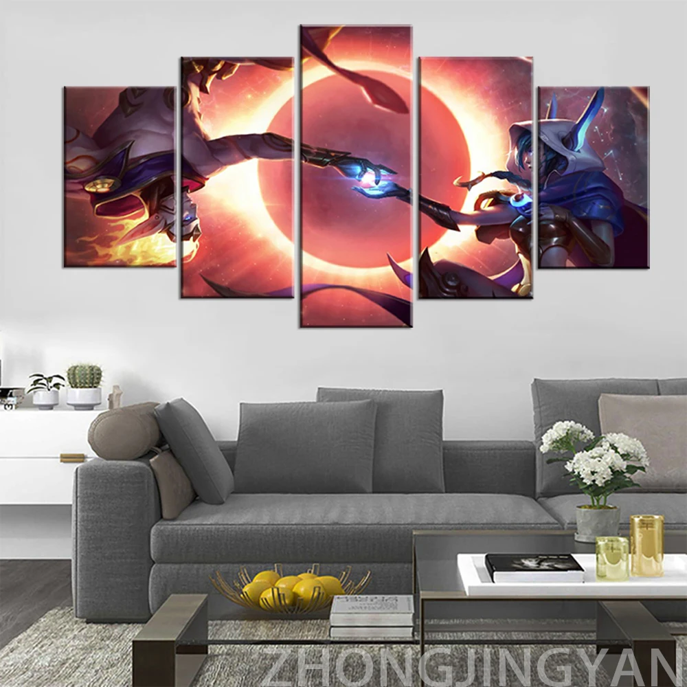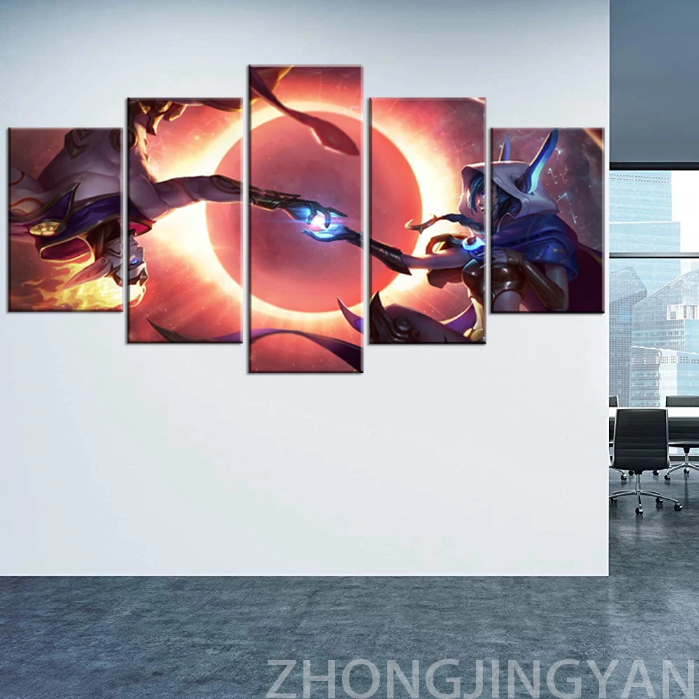 Современная печать на холсте из 5 предметов космическая Лига Легенд, плакаты ракань и иая, игровой Современный домашний декор, настенные художественные картины
