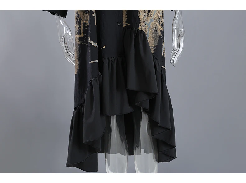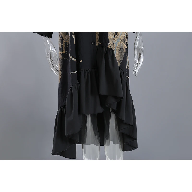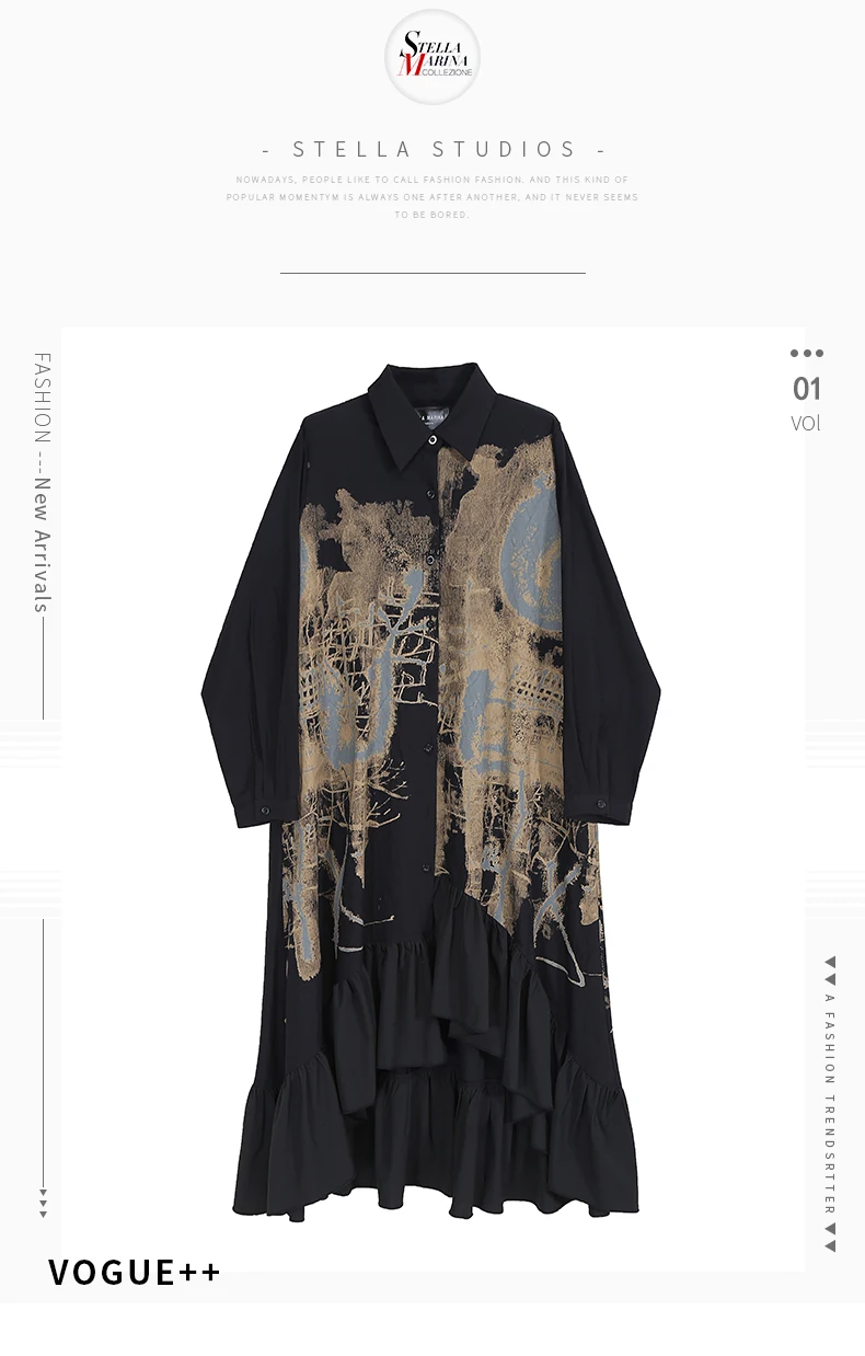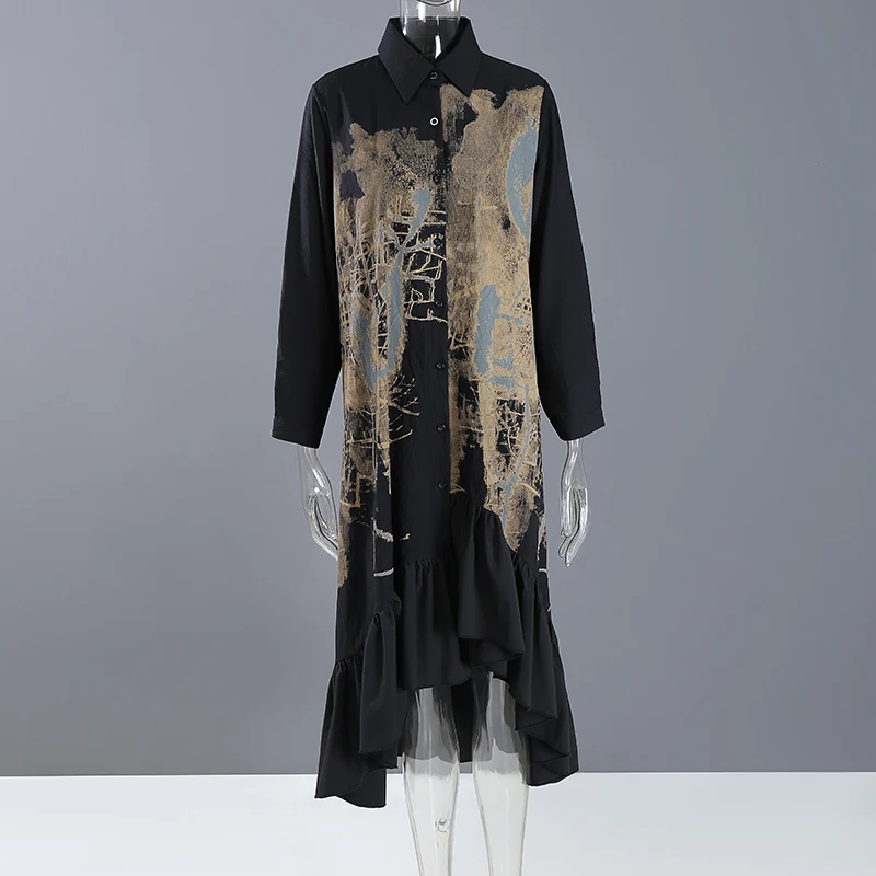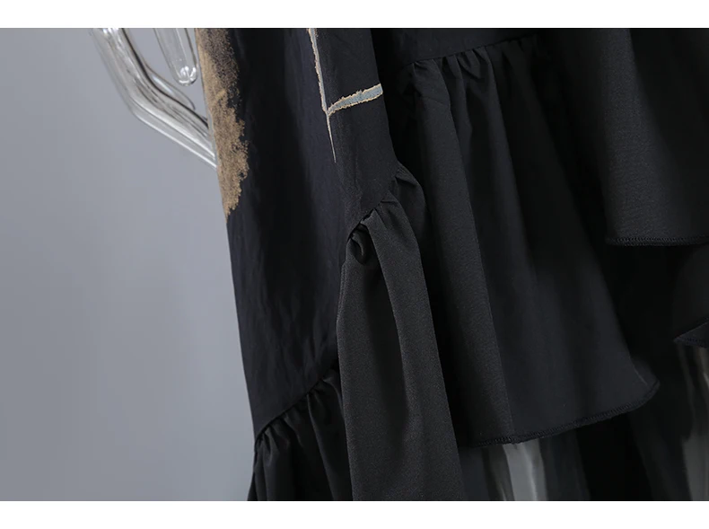 Новинка, весеннее женское винтажное платье-рубашка черного цвета с длинными рукавами и рисунком, с оборками и подолом, женские платья в стиле ретро, Robe Femme 8188