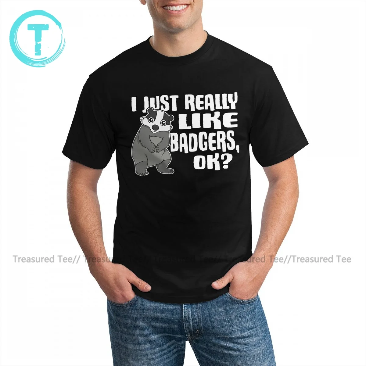 Забавная футболка из 100 хлопка с коротким рукавом, с рисунком барсука, базовая футболка, мужская, большого размера