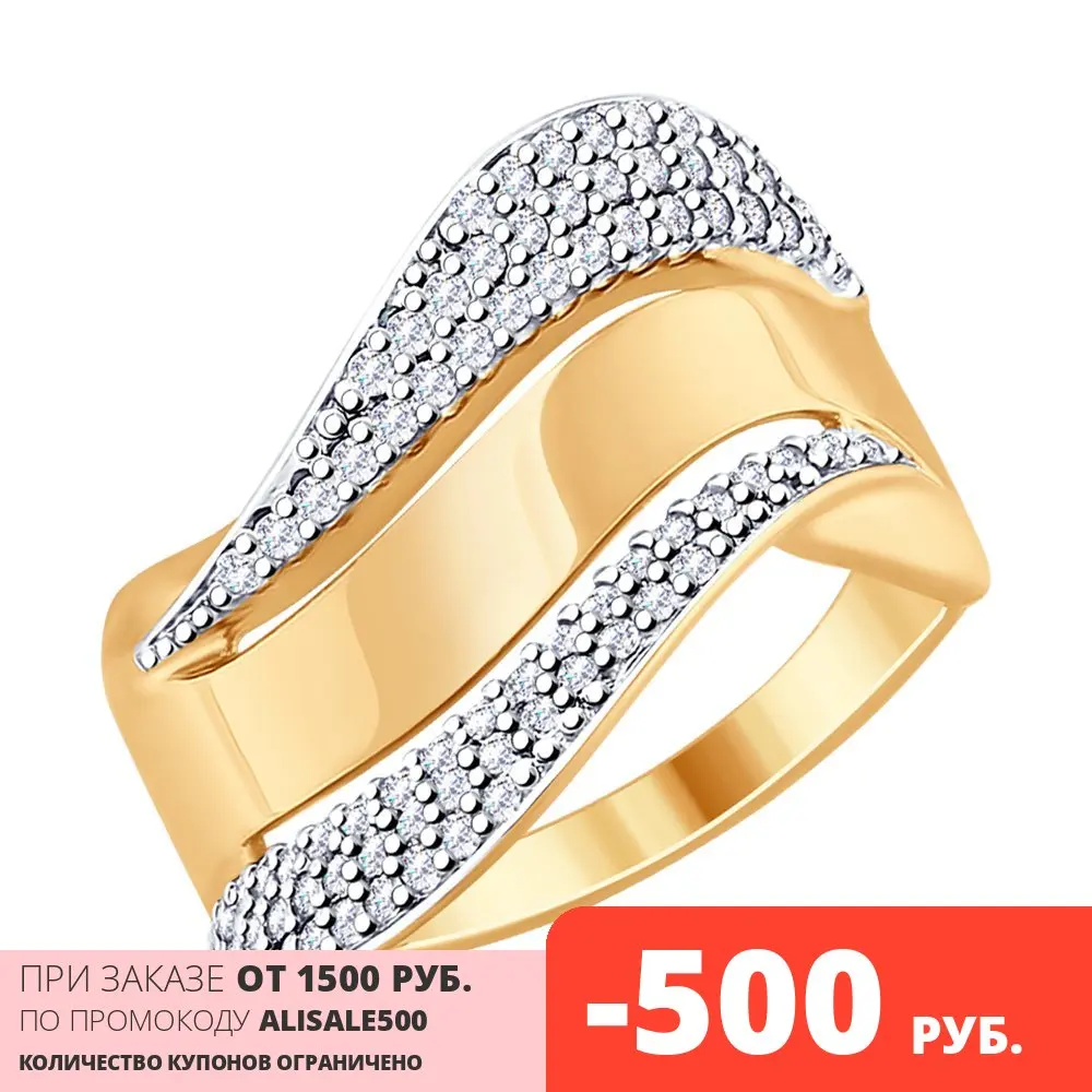 Кольцо SOKOLOV из золочёного серебра с фианитами, Серебро, 925, Женское, Оригинальная продукция