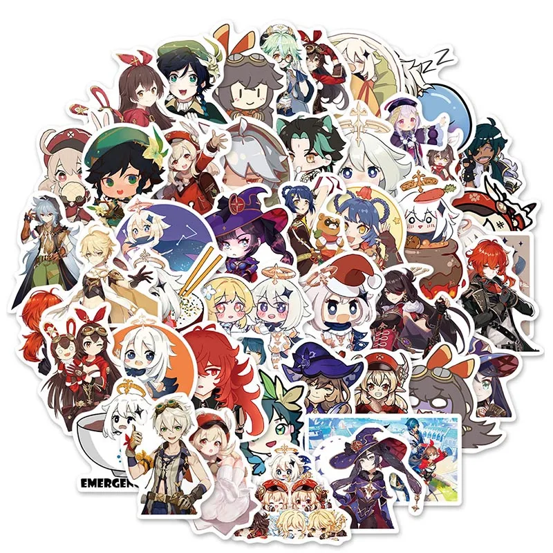 Ударопрочная наклейка Genshin s, мультяшная водонепроницаемая, 1050 шт., наклейка для скейтборда, багажа, гитары, ноутбука VSCO, популярная игра, Детские эстетические игрушки