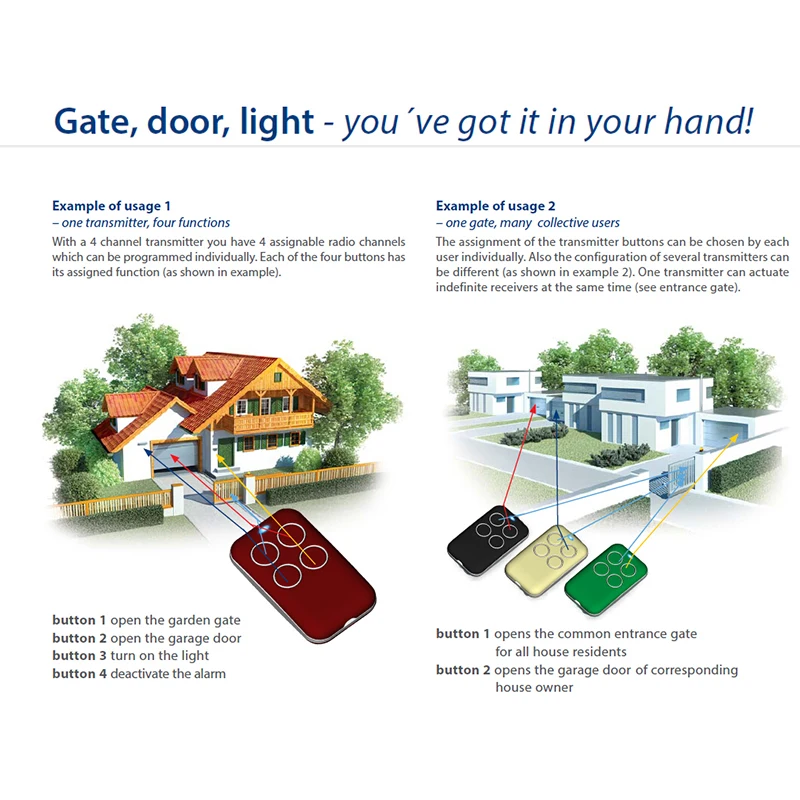 4 кнопки могут собрать 4 различных кода дистанционного управления на разных частотах.