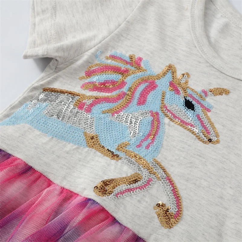 Летнее платье с единорогом для девочек, бальное платье с мультяшной пачкой, детская одежда, платье принцессы с коротким рукавом для маленьких девочек, платья