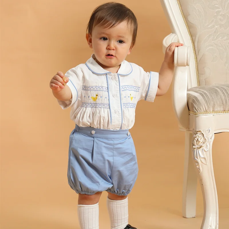 Набор детской одежды с испанской вышивкой, кофта и шорты для маленьких мальчиков