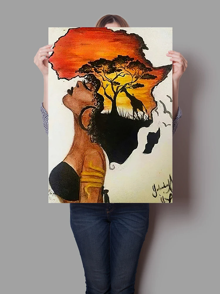Настенное искусство для гостиной домашний декор абстрактная классическая африканская женщина постер с пейзажем заката
