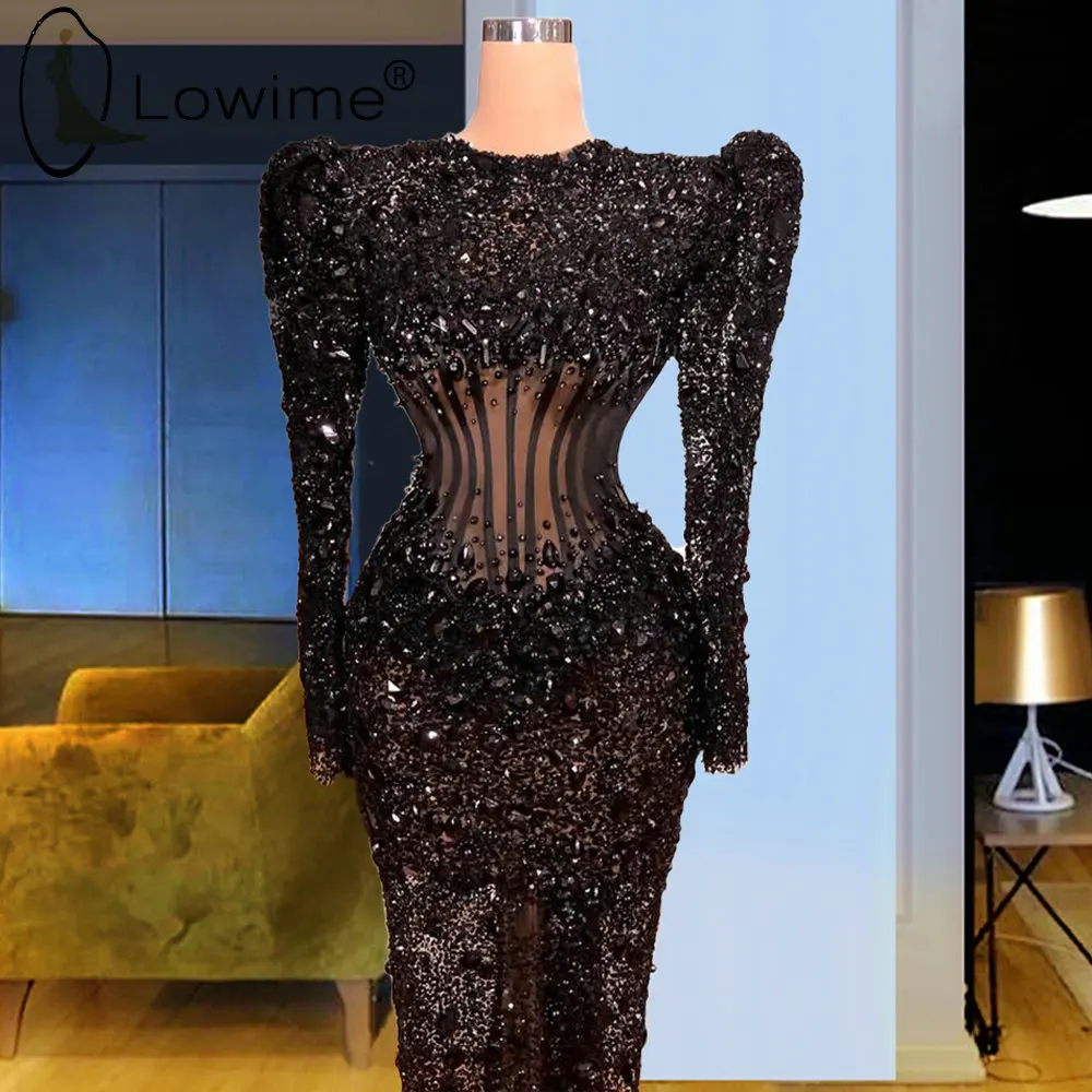 Дубай черный мусульманский пижамная одежда с длинными рукавами Вечерние платья 2021 Сексуальная Иллюзия Саудовская Аравия Средний Восток Выпускные вечерние платья