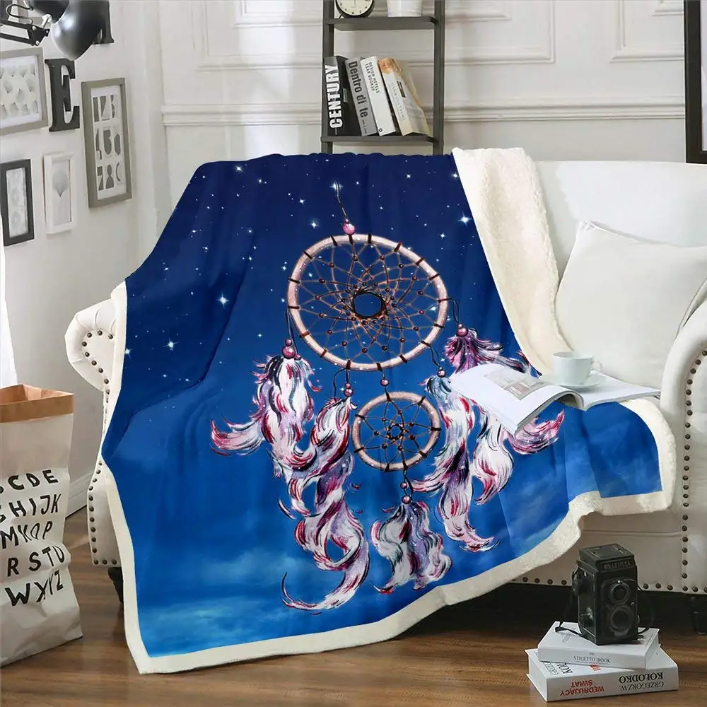 Одеяло Ловец снов с перьями, одеяло в богемном стиле с мандалой и шерпой, одеяло большого размера для детей, мальчиков и девочек, флисовое окрашивание в стиле бохо, хиппи