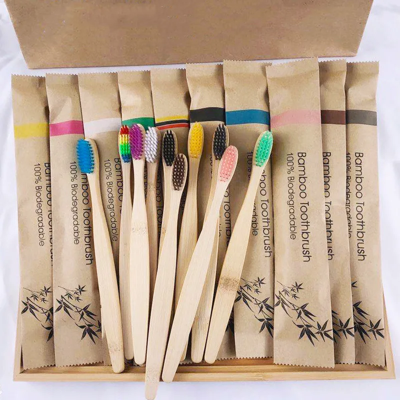 5 шт красочные зубная щетка из натурального бамбука индивидуально упакованный набор мягкие щетинки Твердые бамбуковые ручки зубной щетки товары для отеля