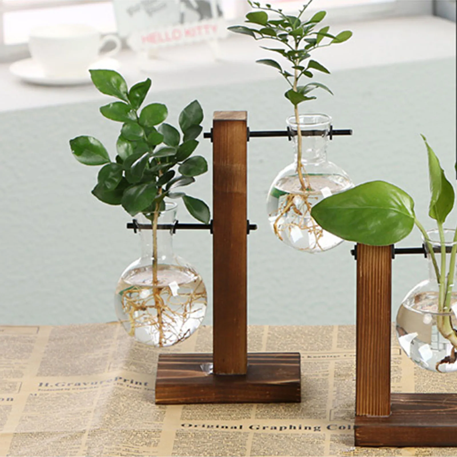 Настольная стеклянная ваза для растений, стеклянный плантатор, держатель для лампочек, цветов, настольный Террариум для растений с деревянной подставкой, растения, Декор для дома и офиса