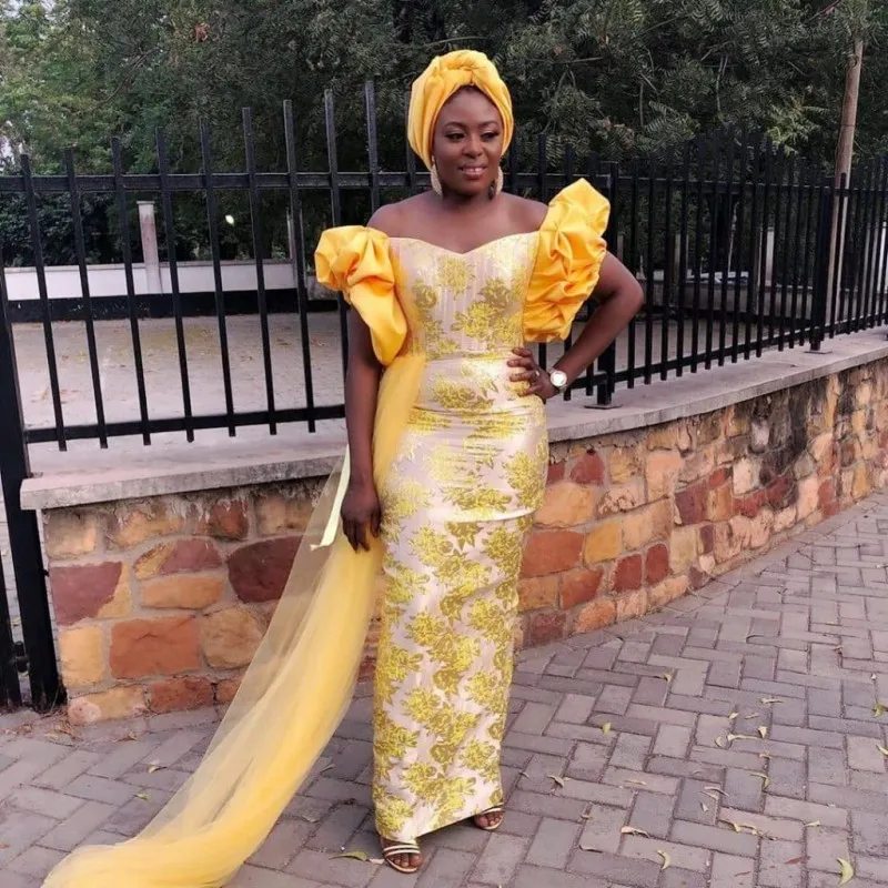 Aso Ebi Сумочка желтые платья на выпускной для черный платье с v-образной горловиной для девочек, с короткими рукавами, оборками, вечерние кружевные платья для женщин; Большие размеры вечерние платья