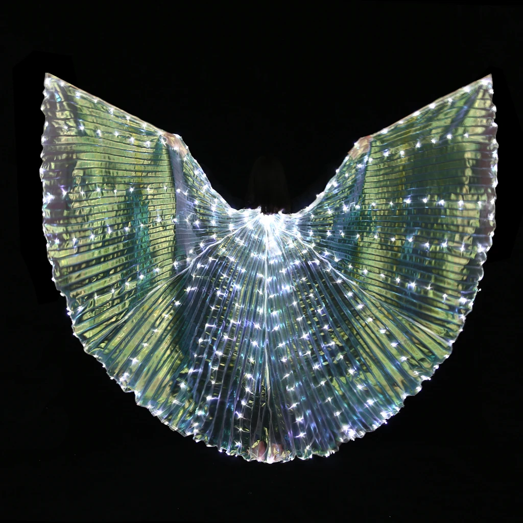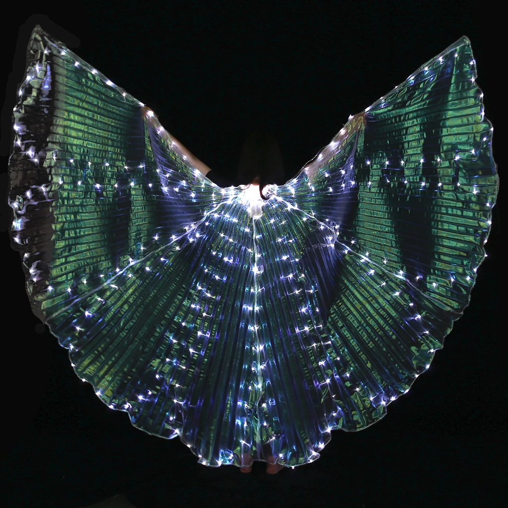 Восточный индийский стиль большой Радужный красочный танец живота бабочка светящиеся светодиодные крыльяПраздничный женский светящийся костюм с крыльями бабочки и феиКрыло поставляется с парой подходящих портативных телескопических палочекБезопасная конструкция с низким напряжением, свободное переключение во время танцев.Идеальное светящееся крыло для выступления на сцене, Хэллоуин, Рождество, вечеринки, день рождения