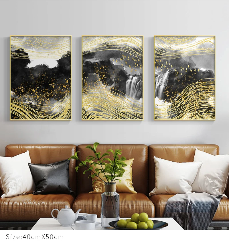 Современный абстрактный пейзаж, изображение на золотой фольге, домашний декор, Скандинавская Картина на холсте, настенный художественный принт и постер для гостиной, спальни
