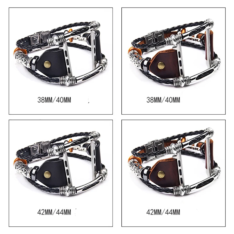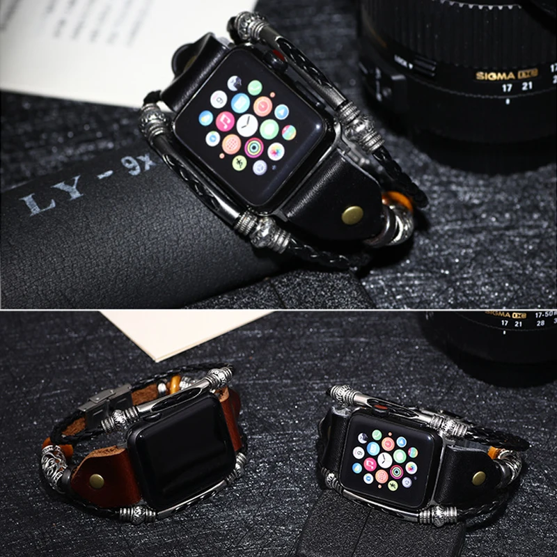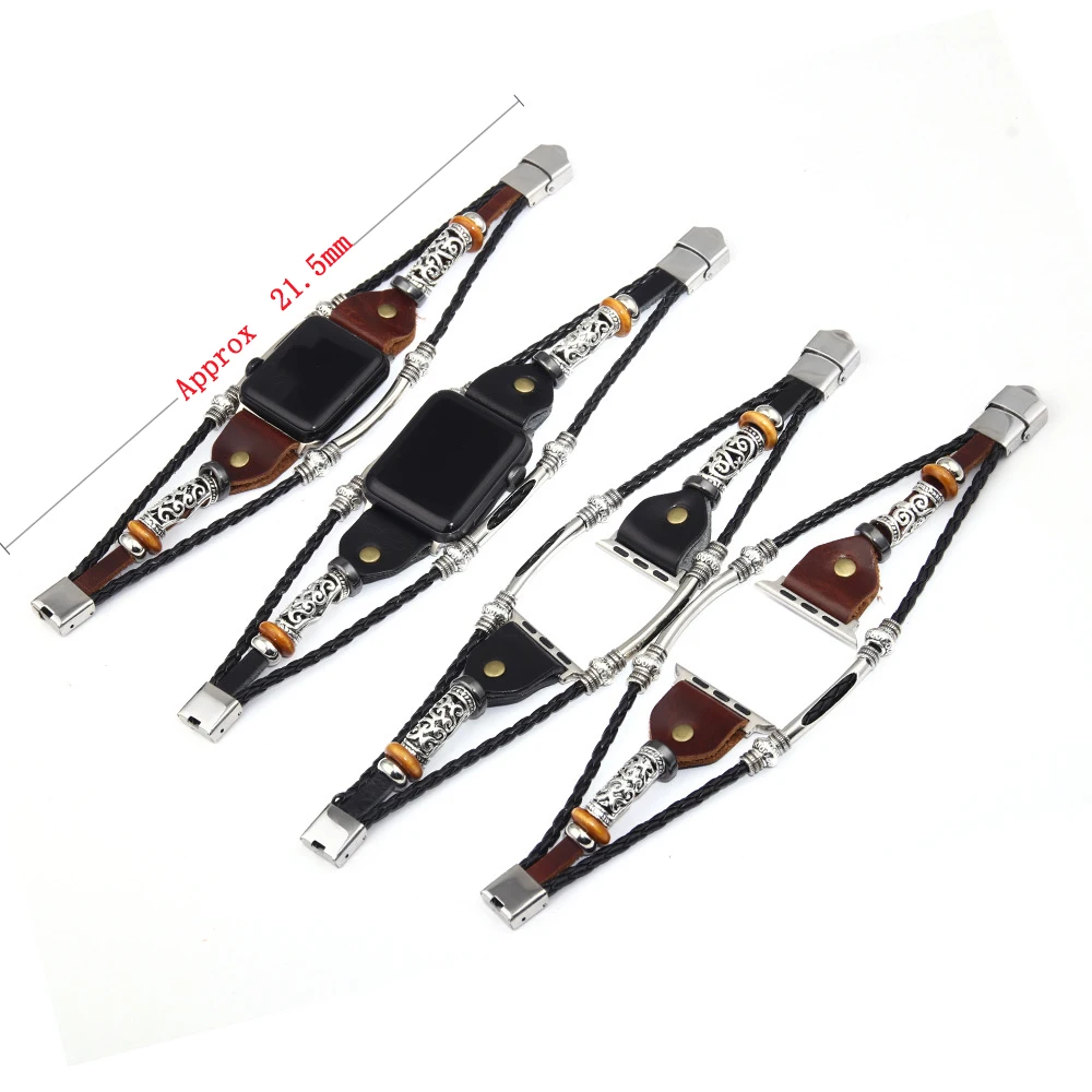 Винтажный кожаный браслет с бусинами Kirykle для Apple Watch серии ...