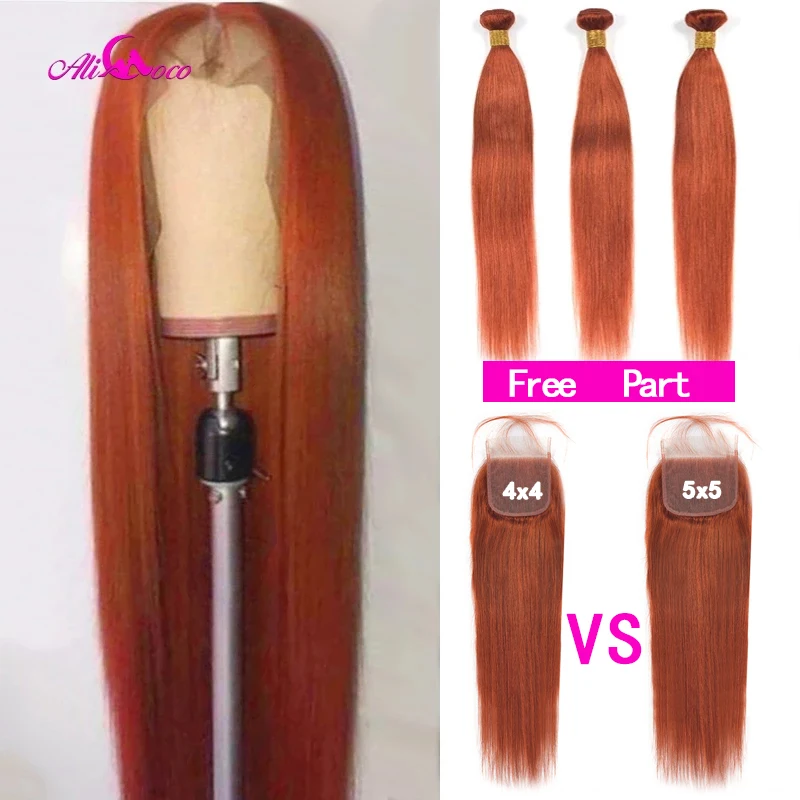 Пряди натуральных волос с застежкой 5x5, пряди оранжевых имбирных волос Ali Coco с застежкой, пряди бразильских натуральных волос с застежкой Реми