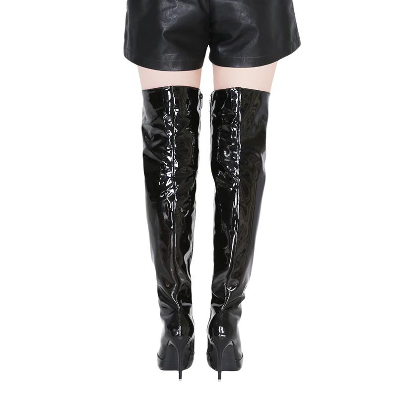 Пикантные Серебристые зеркальные сапоги высокие сапоги до бедра; Для женщин T-Show, с острым носком, Обувь для вечеринок и клуба высокий тонкий каблук Сапоги выше колена ботинки с высоким голенищем для Для женщин