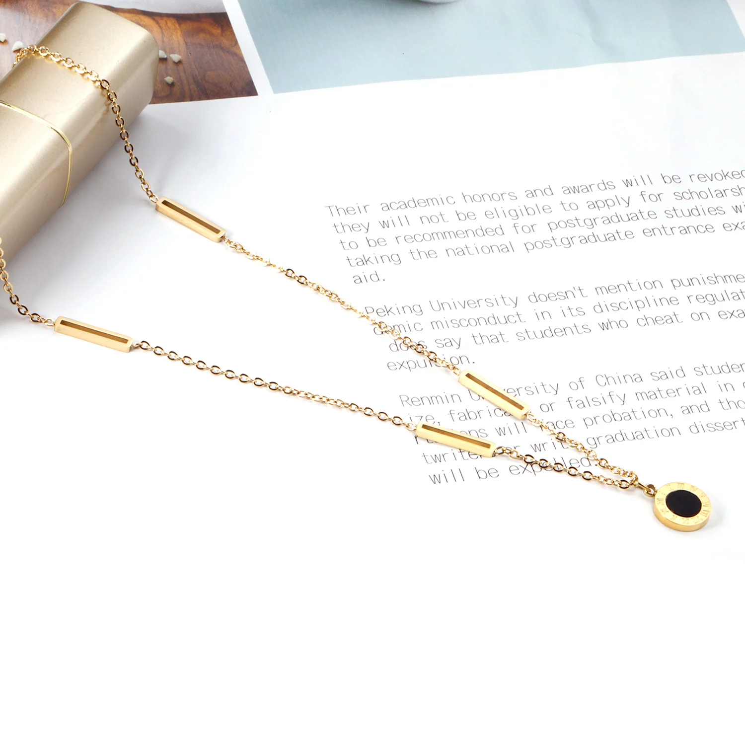 Ожерелье с круглым золотым кулоном с эмалевым маслом для женщин, по...