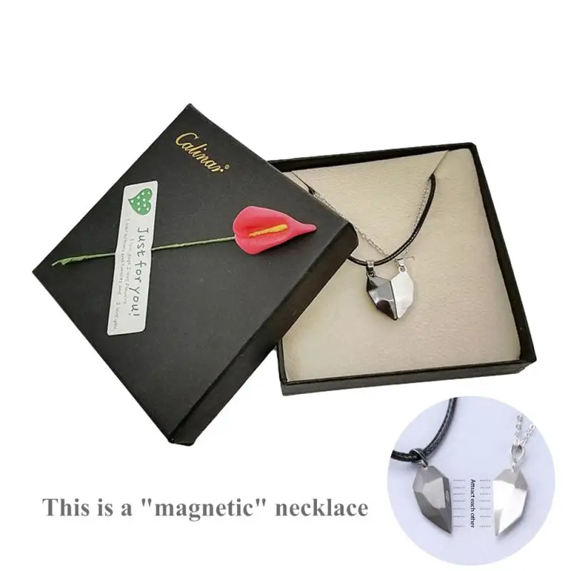 Ожерелье женское магнитное в форме сердца, Шарм с гранями на расстоянии, кулон для влюбленных, хороший подарок на день Святого Валентина, 2 шт.