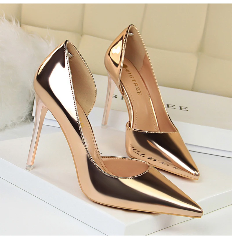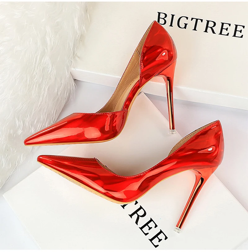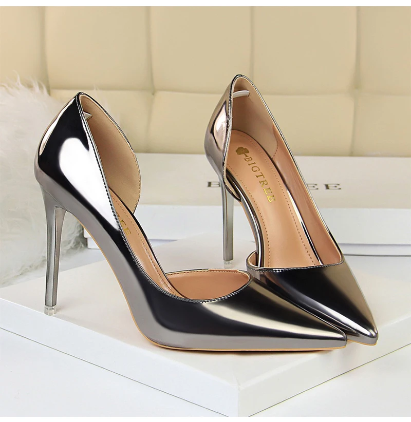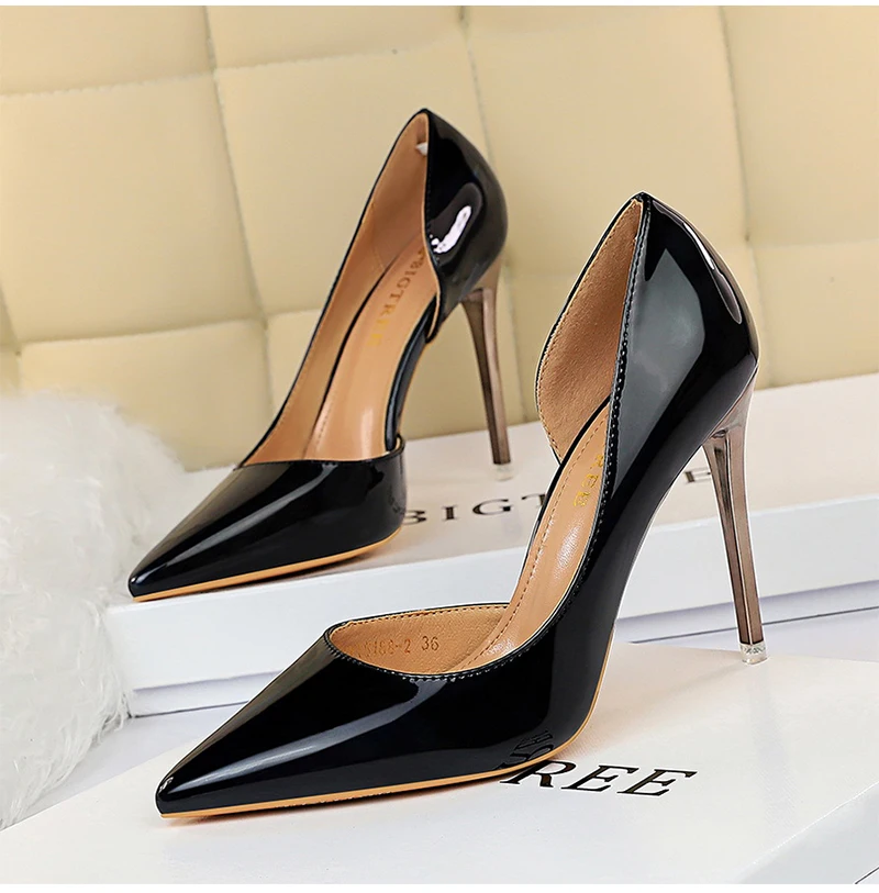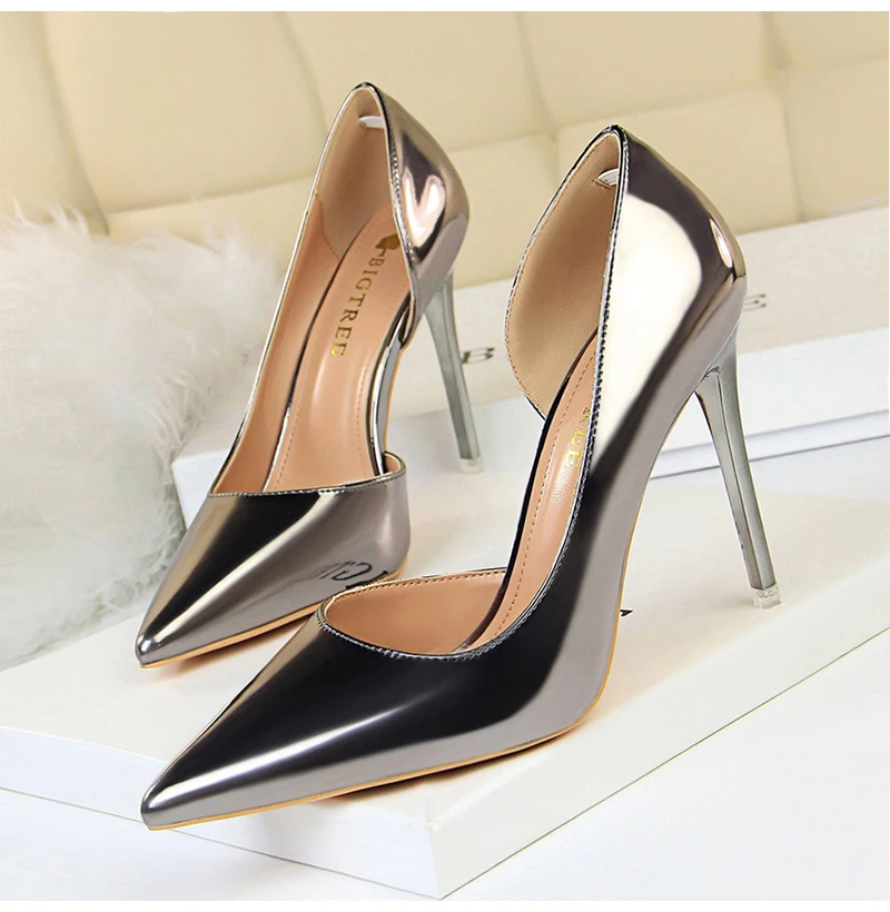 Туфли-лодочки BIGTREE женские, высокий каблук, лакированная кожа, классические, пикантные свадебные туфли, на шпильке, размер 43
