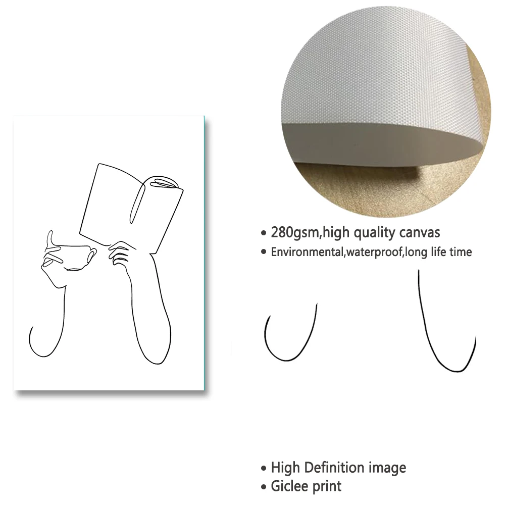 Холщовая живопись кофе, Художественная печать, абстрактная женщина, руки, книга, линия, рисование, книжный плакат, книжный магазин, Настенная картина, декор кофе