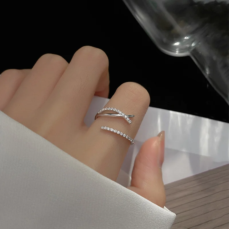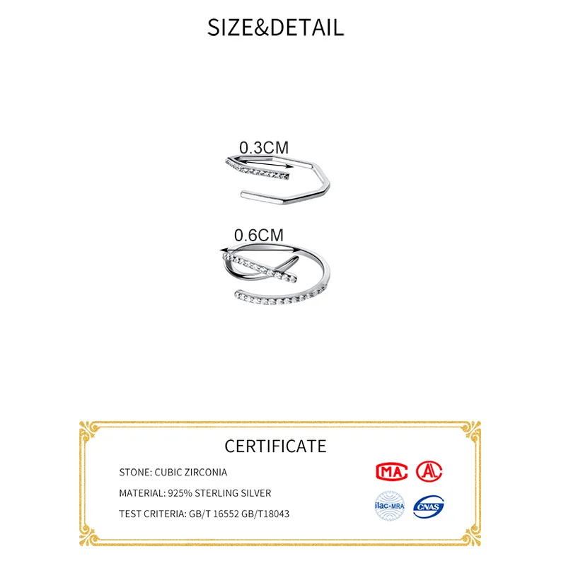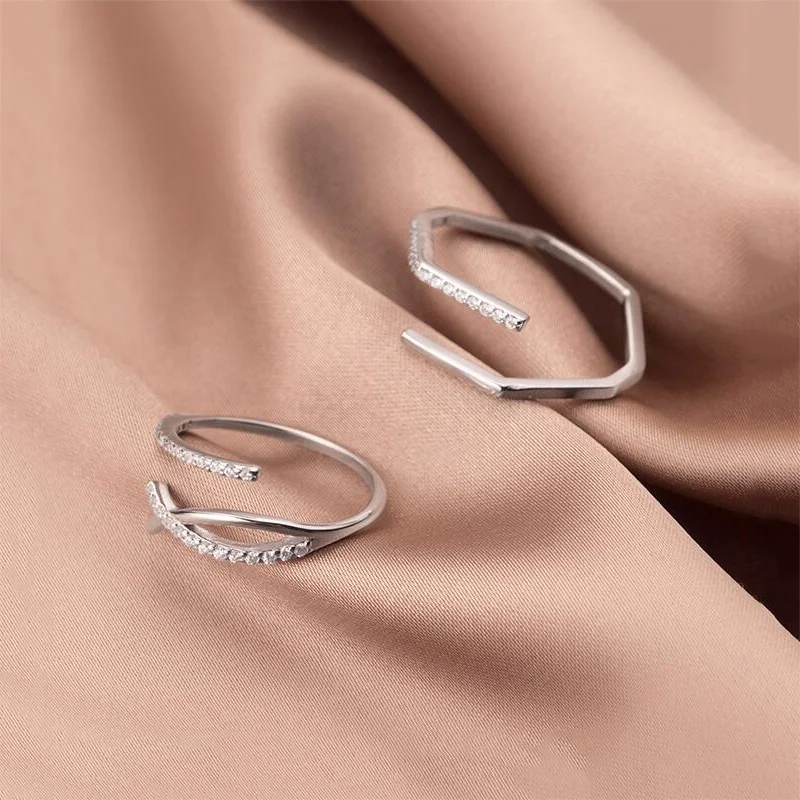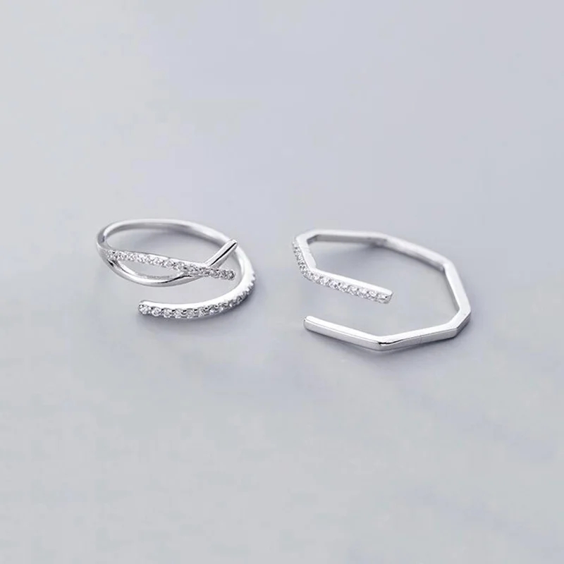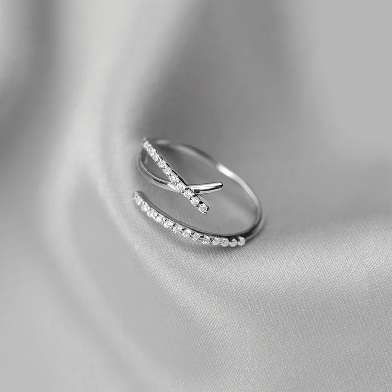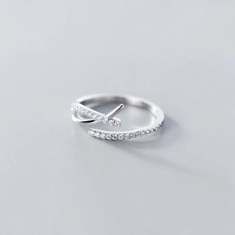 INZATT реальные 925 Стерлинговое Серебро циркон крест Регулируемые кольца для модных женщин; Ювелирные изделия из драгоценных камней в минималистском стиле панк в виде геометрических фигур аксессуары