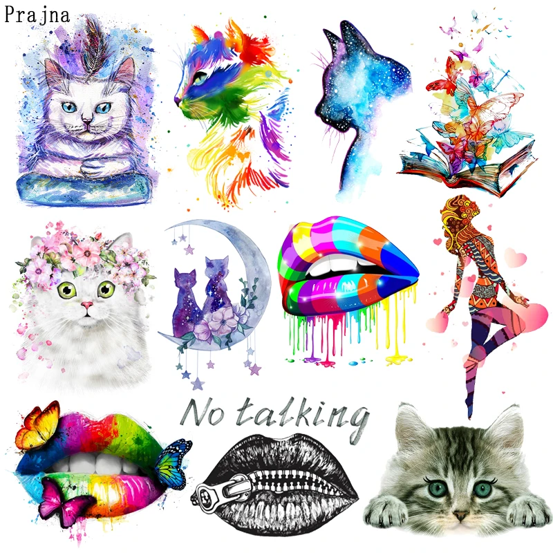 Разноцветная нашивка Prajna с мультяшным котом, железные Переводные нашивки для одежды, губ, бабочек, термонаклейки, аппликация, железные нашивки