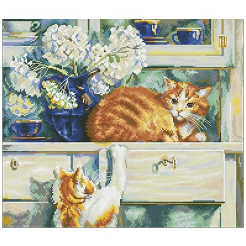 Набор для вышивки крестиком "Кот в ящике", 11CT 14CT 18CT
