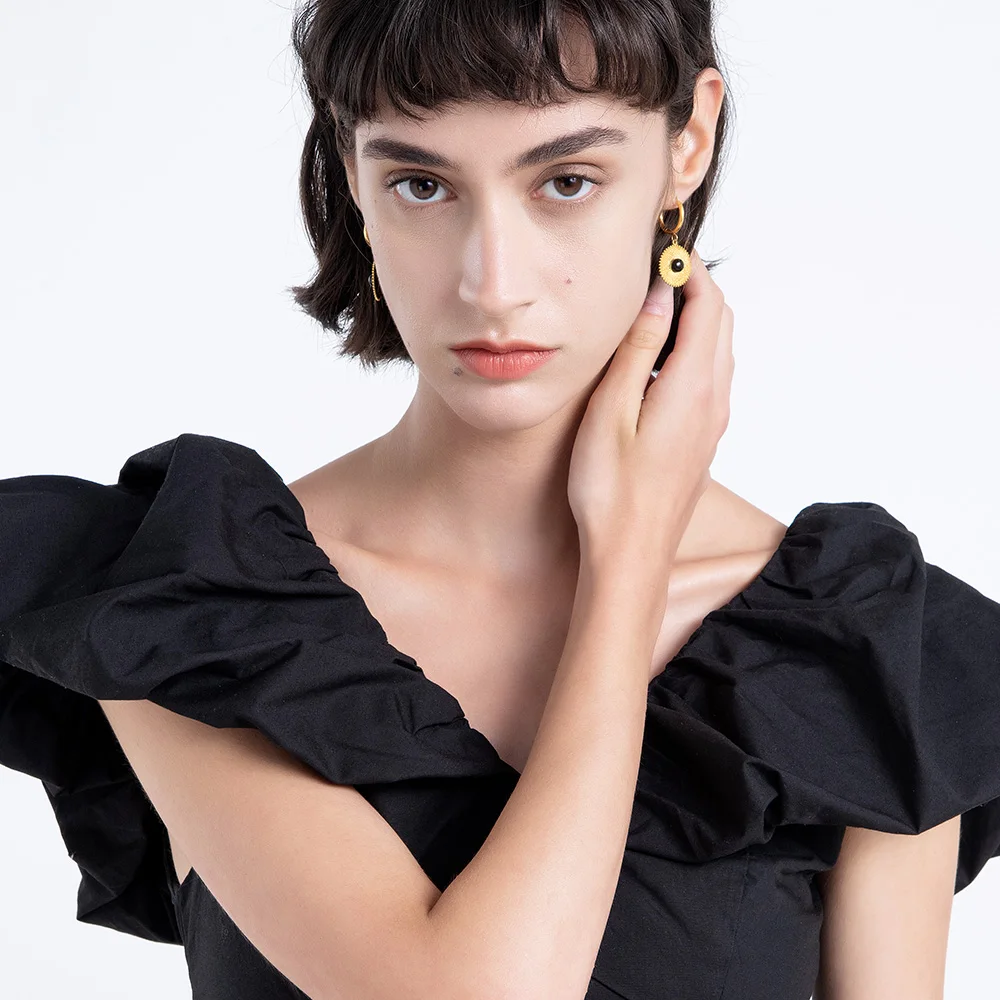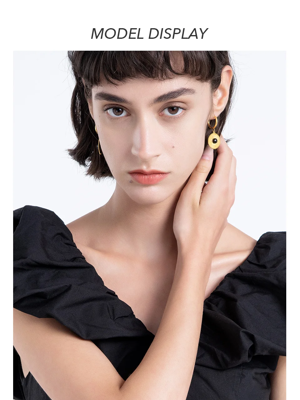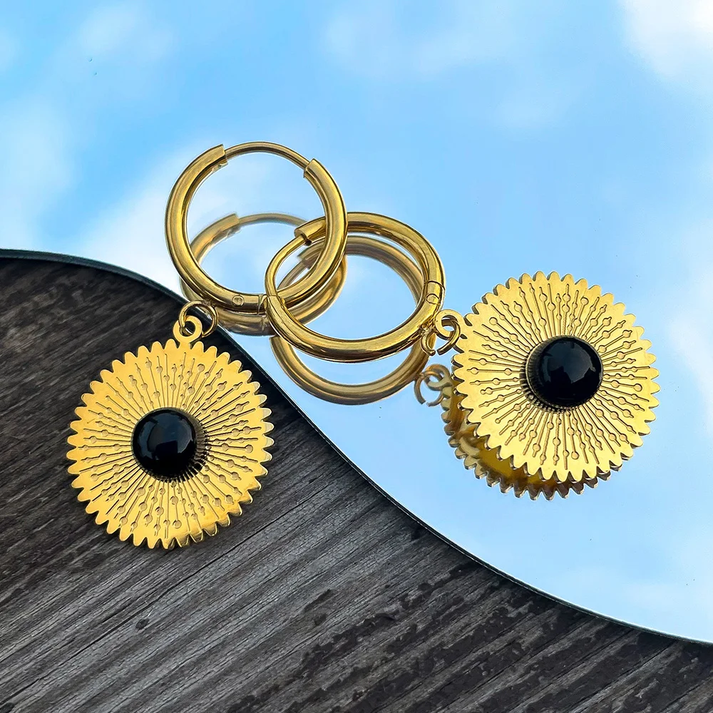 Женские серьги-подвески с черным агатом, из нержавеющей стали
