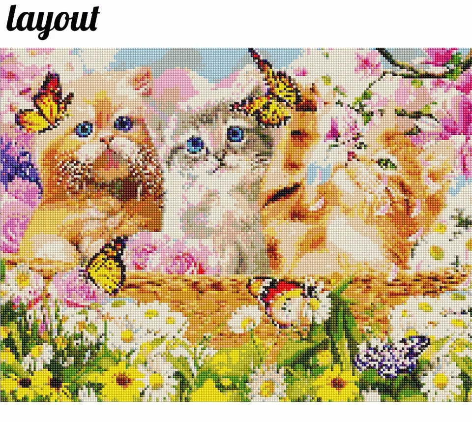 Картина из страз 5D в виде кошки, полная картина из квадратных иску...