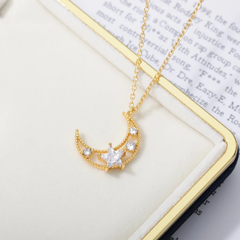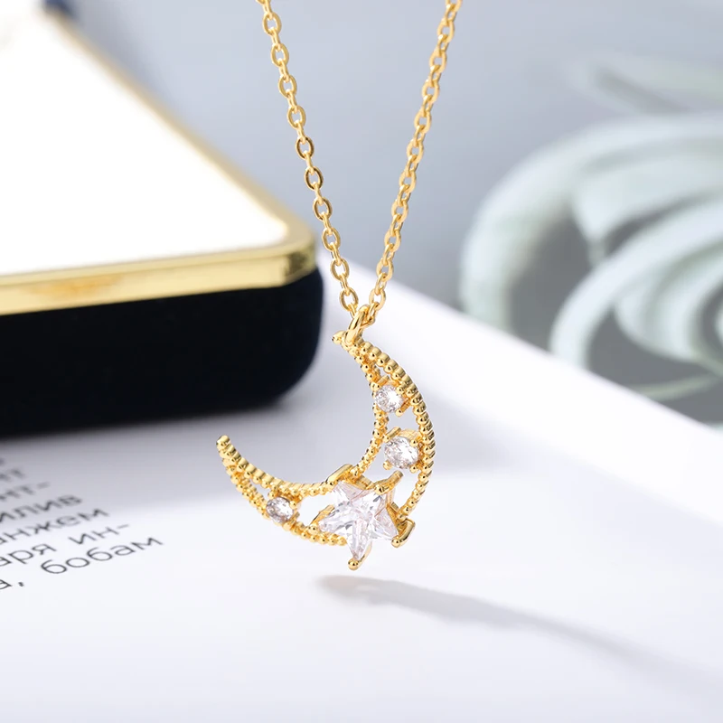 Луна и звезды ожерелья для женщин Кристалл ювелирные изделия из нержавеющей стали для украшений ручной работы полумесяц Подвески Ожерелья Coliier Femme 2021 BFF