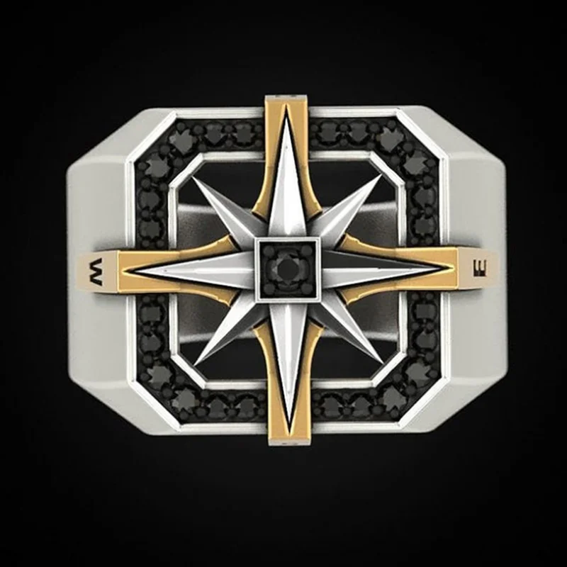 Кольцо SECRET BOY двухцветное мужское, винтажный амулет в скандинавском стиле, кольцо с компасом викингов, Подарочная бижутерия для бойфренда, Размеры 6-13
