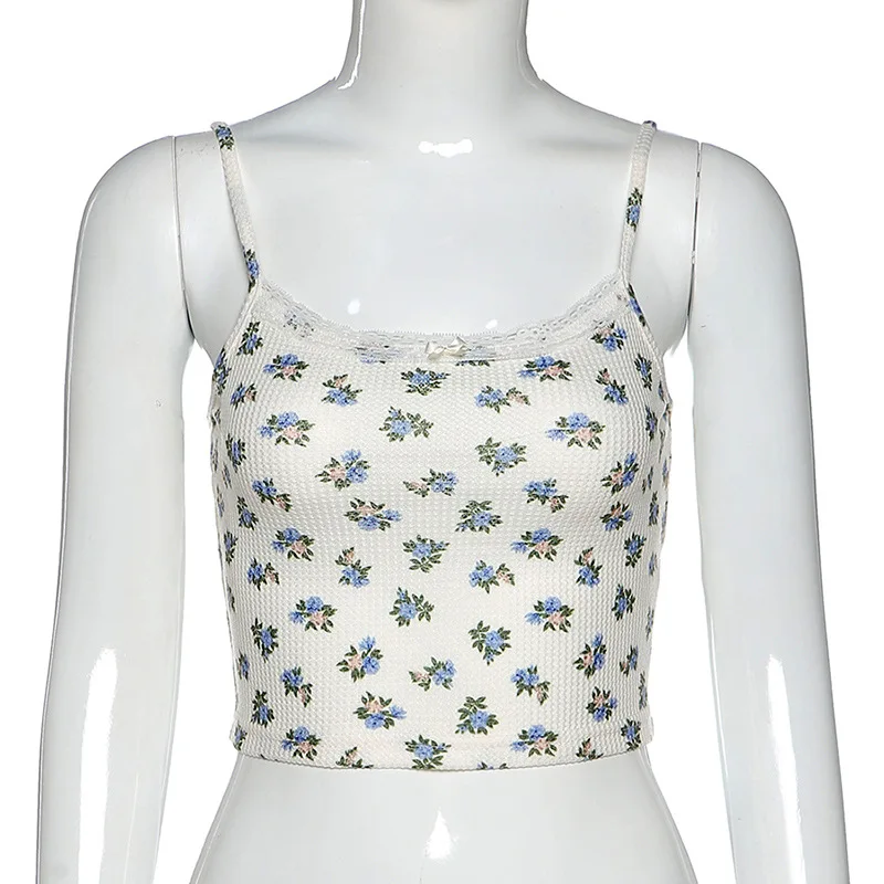 Модный белый жилет с цветочным принтом, кроп-топы, новинка 2021, Летний милый сексуальный стильный кружевной короткий жилет без рукавов, женская одежда
