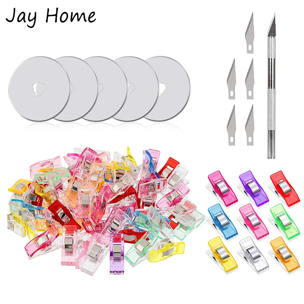Набор роторных резаков 45 мм с лезвием из 5 предметов, линейкой для пэчворка, зажимами для шитья, ковриком для резки и ножом для резьбы по ткани