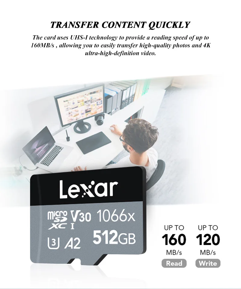 Карта памяти Micro SD Lexar, 1066x64 ГБ, 128 ГБ, 256 ГБ, V30, A2, к...