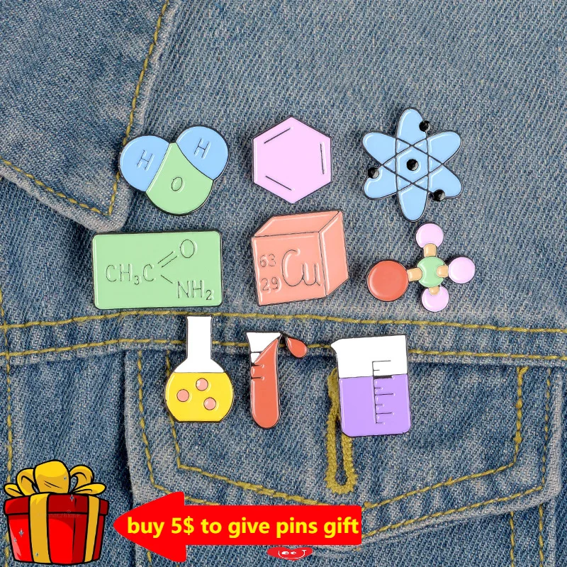 Брошь с химическими элементами, контейнер с надписью, значок в виде...