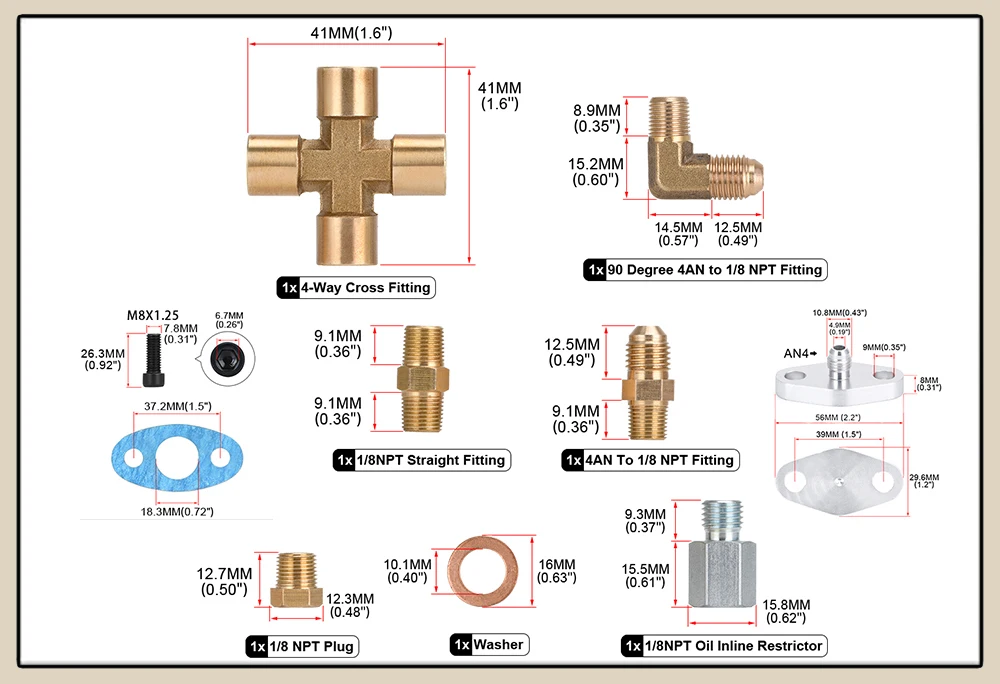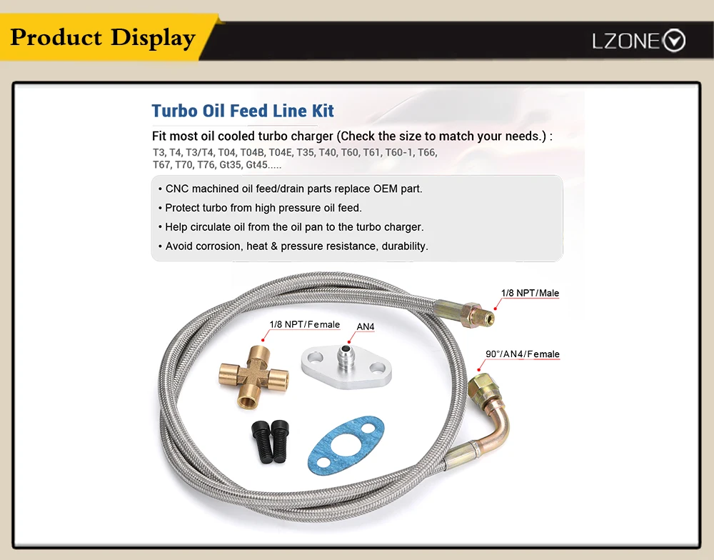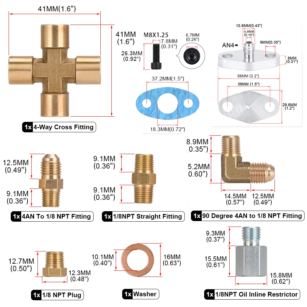 Турбомасляная линия 90 градусов, разъем AN4 для прямого 18 NPT Малый адаптер, Комплект прокладок, крестообразный фитинг для T3 T4 T04E T60 T61 Turbo