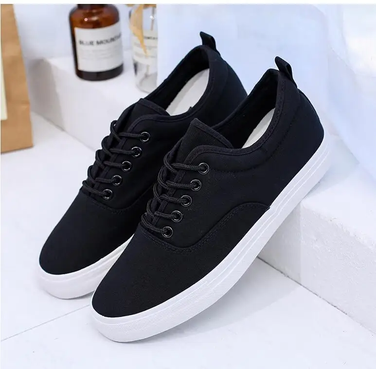 Мужская обувь, повседневные мужские кроссовки, парусиновые черные и...