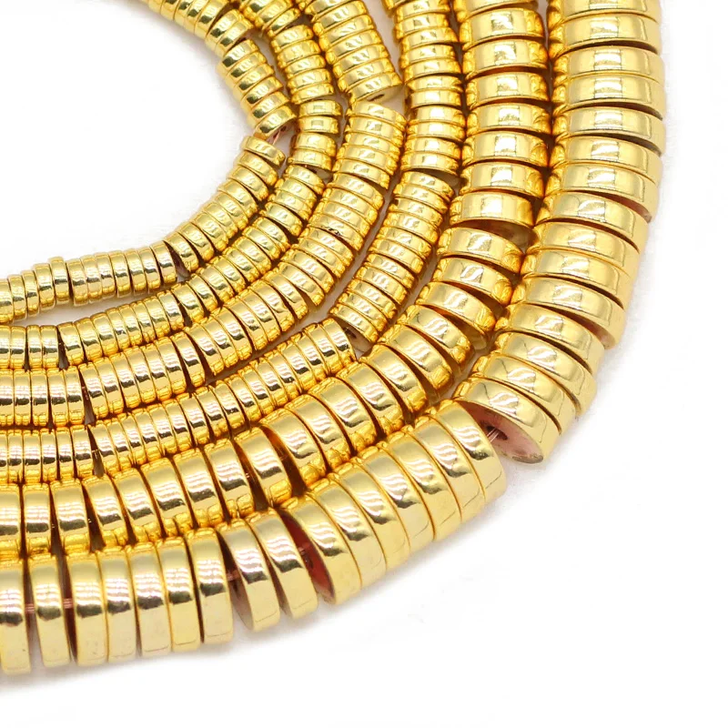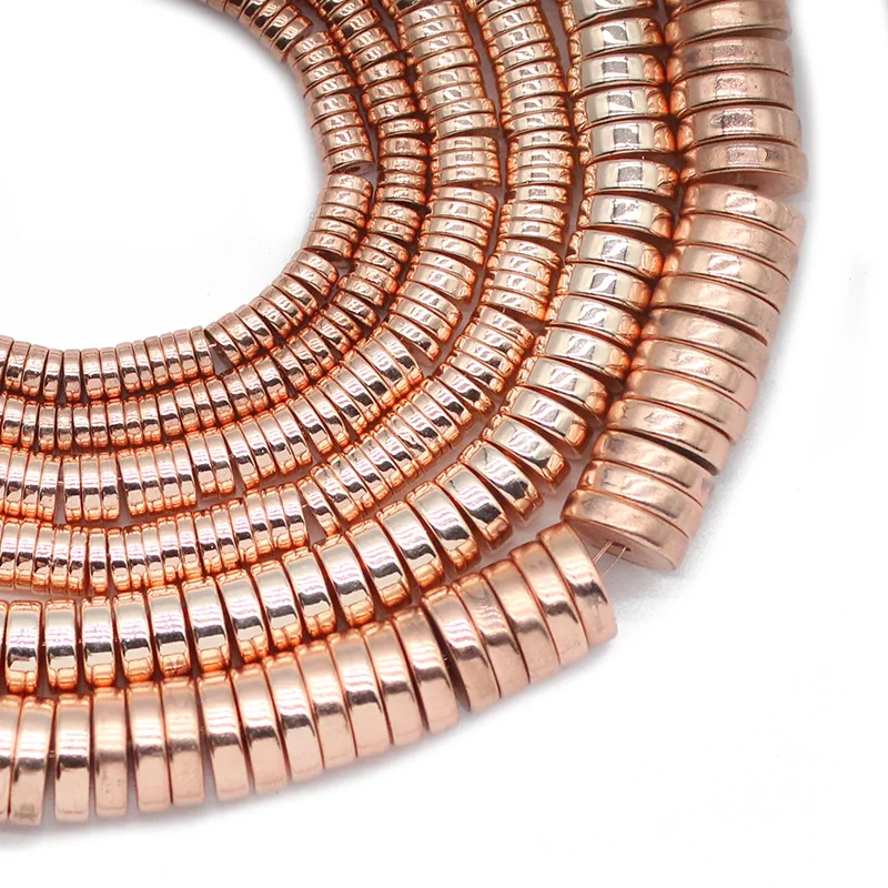 Очарование Гематит Натуральный камень из розового золота серебра плоские круглые монеты Свободные Spacer Бусины для самостоятельного изготовления ювелирных изделий Аксессуары 3468 мм