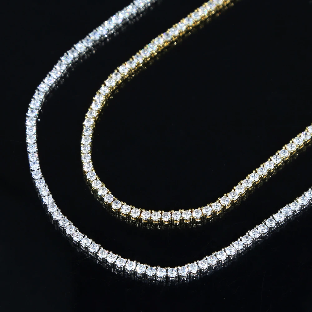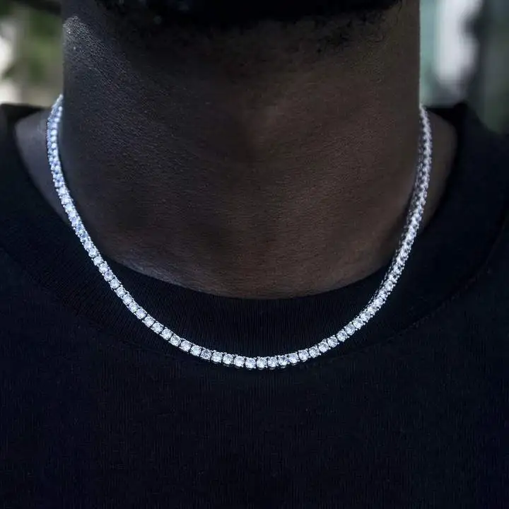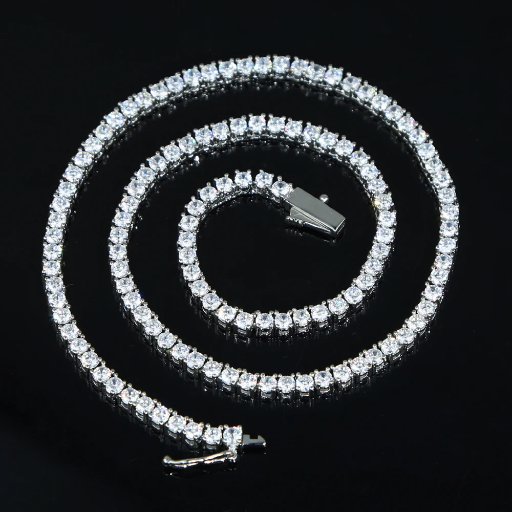 Цепочка для тенниса Мужская, Классическая бижутерия в стиле хип-хоп и лед, браслет с фианитами в стиле рокпанкИскрящимся кубическим цирконием, 3 мм, 5A