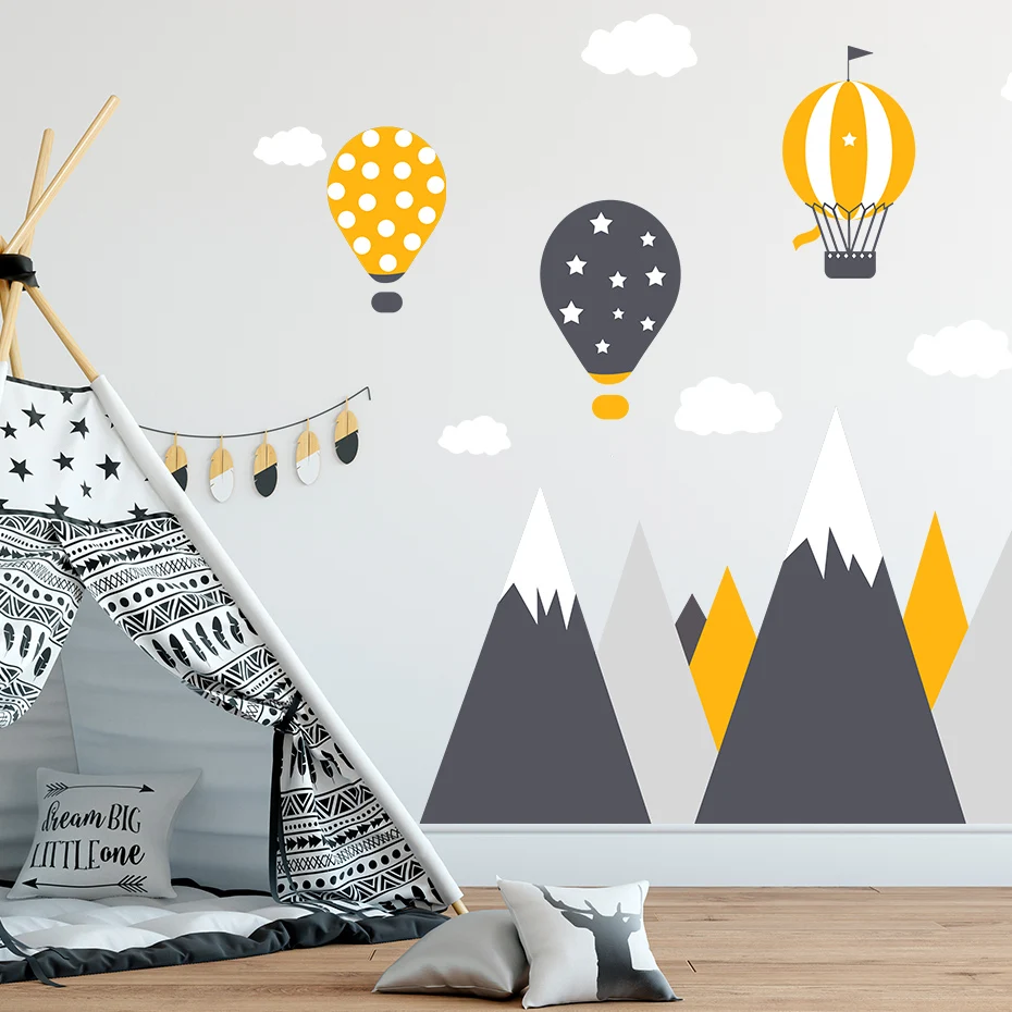 Большие горы воздушные шары облака настенные наклейки для мальчиков детские наклейки съемные детские настенные художественные плакаты ПВХ для спальни домашний декор