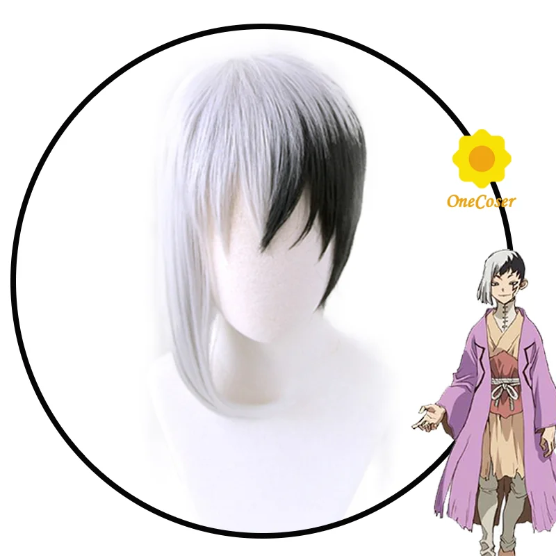 Аниме Dr.Stone Asagiri Gen, парик для косплея, короткий черно-белый парик, термостойкие волосы из волокон + парик, мужские вечерние парики