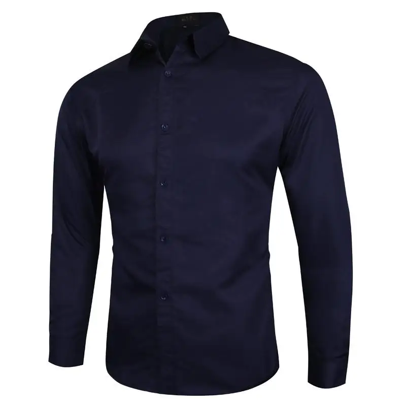 Рубашка мужская с длинным рукавом, Повседневная Блузка Slim Fit, деловая формальная, для работы, модная однотонная