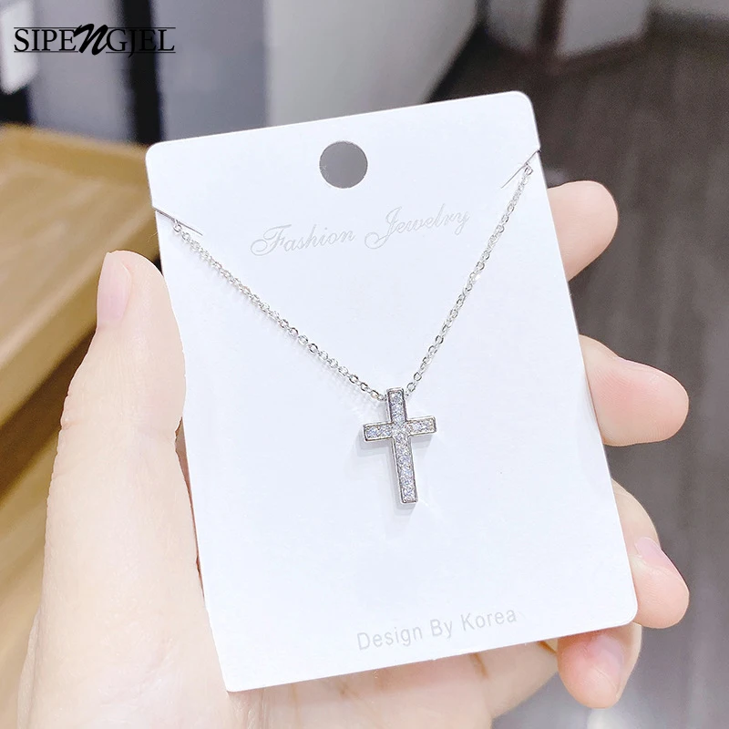 Женское колье с геометрическим крестом SIPENGJEL, серебряное ожерелье с маленькой подвеской, вечерние ювелирные изделия для свадьбы
