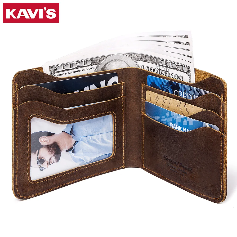 Кошелек KAVIS из натуральной кожи в стиле ретро для мужчин, тонкий ...