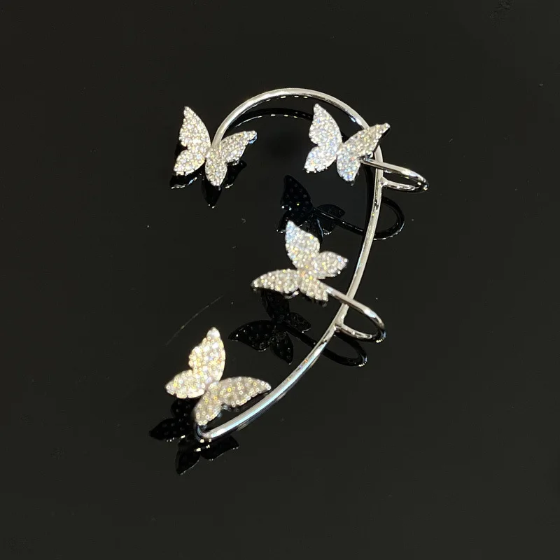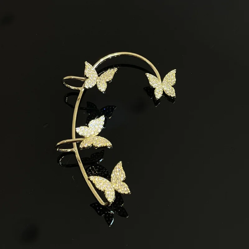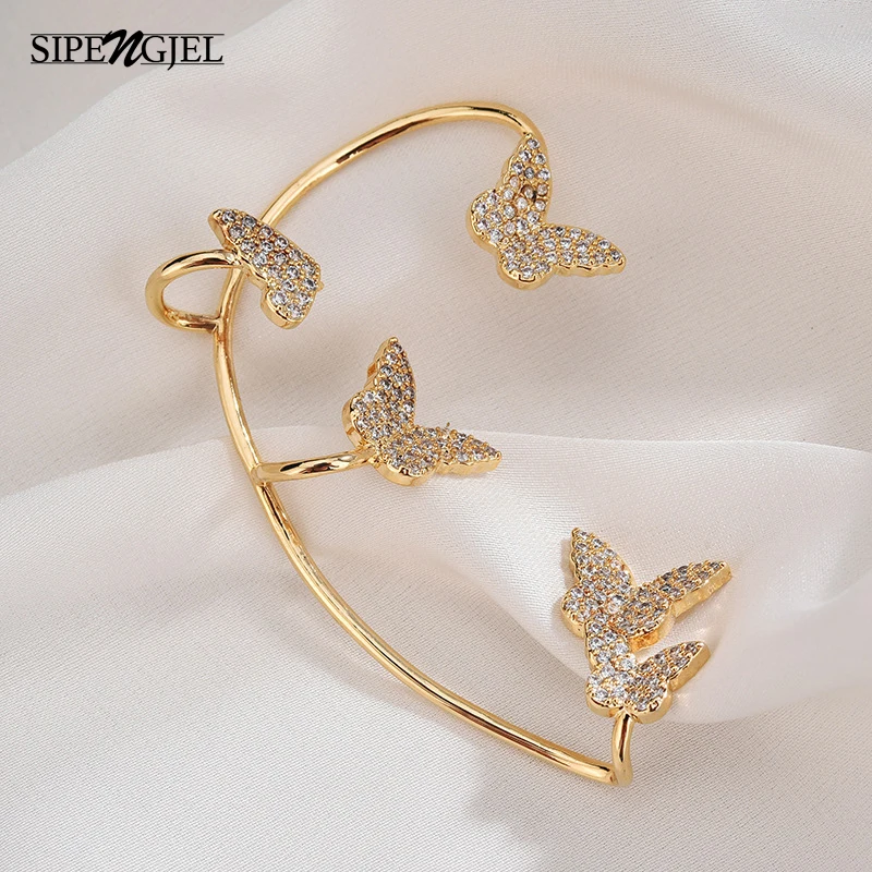 SIPENGJEL, модный дизайн, циркониевые манжеты с бабочками, клипсы, серьги без имитация пирсинга, каффы, серьги для женщин, ювелирные изделия