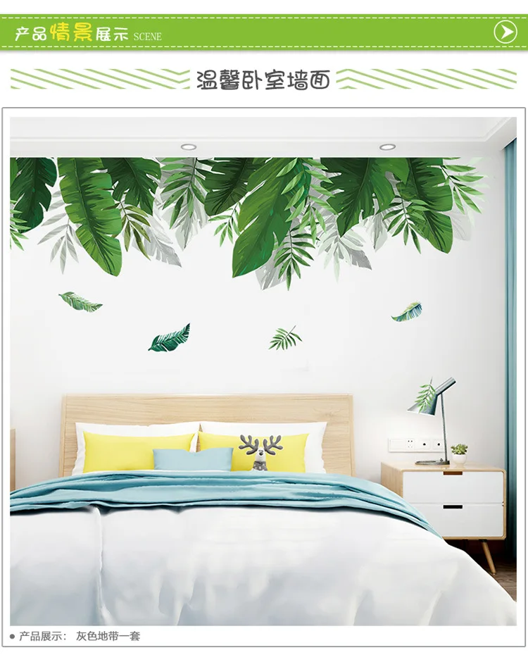 Зеленое растение Настенная Наклейка для гостиной, дивана, фон для украшения спальни, общежития, съемные Креативные обои