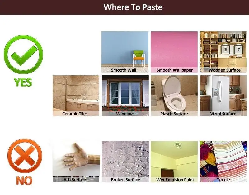 3.Если наклеить на стену влажной, состаренной или просто нанести новую краску, наклейка может привести к автоматическому отпаданию наклейки или к шелушению стен, вы можете использовать фен горячим воздухом, чтобы высушить стену или испаряться поверхность краски на некоторое время, а затем приклеить, Но эффект может отличаться, поэтому, пожалуйста, внимательно выбирайте место наклейки;